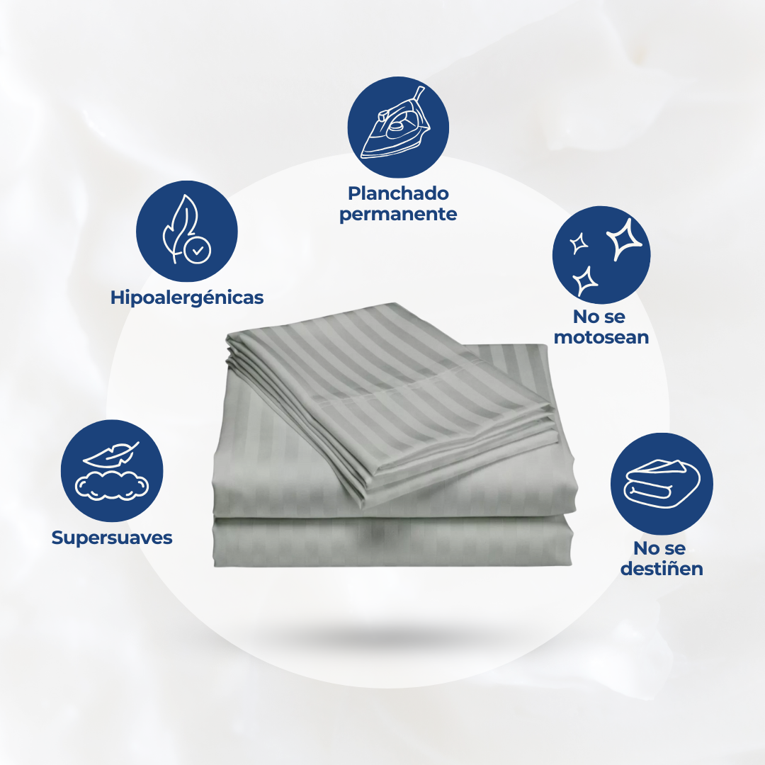 Las fotos son de referencia, ya que el diseño del acanalado puede variar entre rayas, rombos, cuadros, entre otros. Además, nuestras sábanas planas y fundas, pueden incluir un aplique decorativo. Si quieres un tipo de acanalado en específico, completa tu compra por WhatsApp.