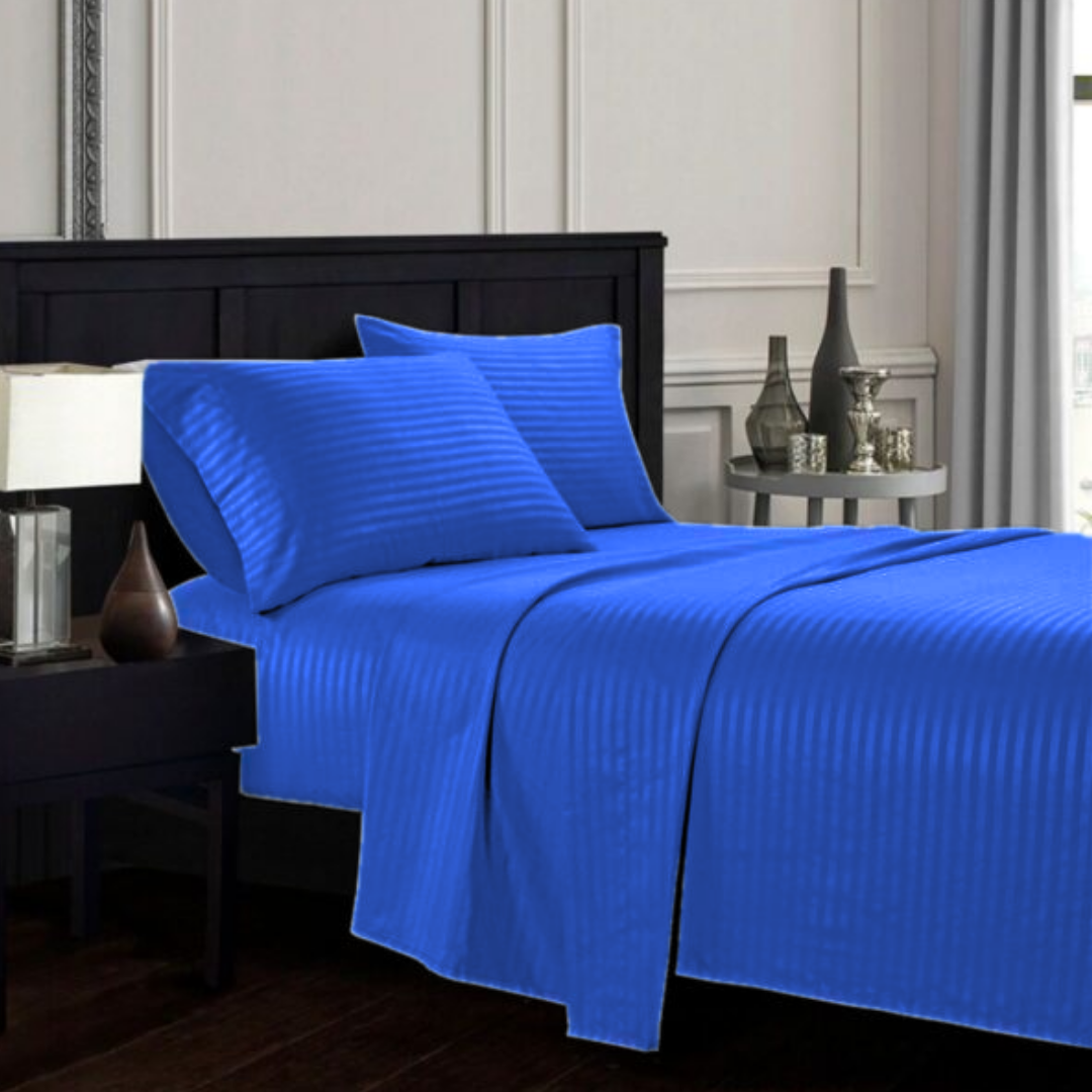 Duerme mejor desde la primera noche con nuestras elegantes sábanas azúl rey de microfibra premium: no destiñen, anti‑motas, efecto planchado permanente y textura supersuave.